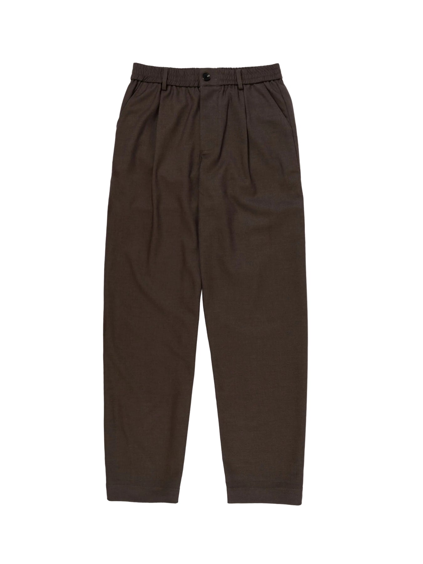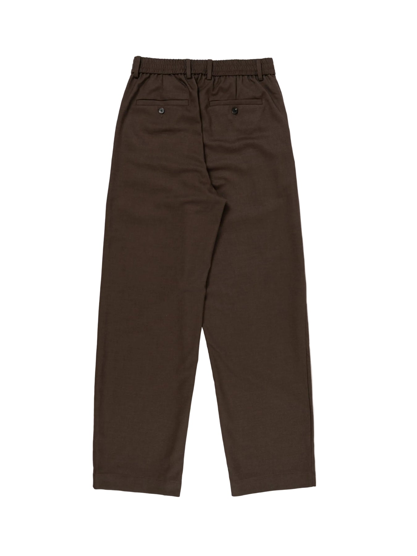 A relaxed everyday essential. The Agency trouser is cut from a heavy twill weave, a staple in our tailoring program and an elevation of our classic Smoke trousers. This full length, wide legged style trouser is perfect to complete a full contemporary suit in interesting silhouettes or simply a shirt or tee. Elasticated waist, center front zip fly and button closure. Welt pockets at the back and slanted pockets at the front.